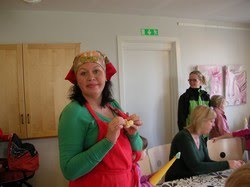 I dag pysslades det för fullt på biblioteket. Vi hade besök av både påskharar och påskkärringar som förmodligen redan är på väg till blåkulla vid detta laget. Vill man sen göra lite egna påskägg i helgen kan vi tipsa om att det går att färga fina ägg med lökskal (från gul eller röd lök), grässtrå, blad, blomma som snödroppee eller vintergäck. Koka äggen i vatten med någon av dessa ingredienser i. Vill du ha ljusa mönster i äggen kan du innan du lägger i dem i vatten vira ett gummiband runt, eller linda in ägget i spetstyg. Vips så har du fina klimatsmarta påskägg att ställa på påskbordet. Lycka Till!